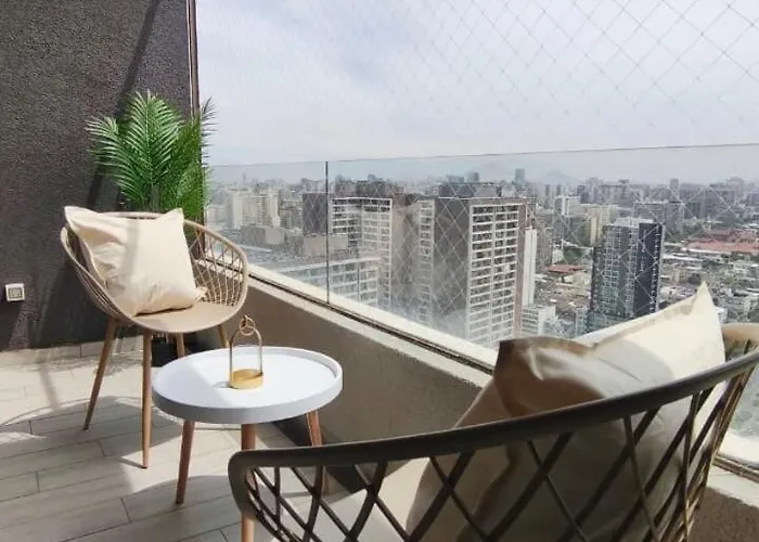 Departamento Vista Espectacular Conectividad Total Apartment Santiago is located about a 25-minute walk from the La Chascona House Museum and 2.5 km from the modern Centro Cultural Palacio de La Moneda. This apartment boasts a terrace and a private parking lot on site.